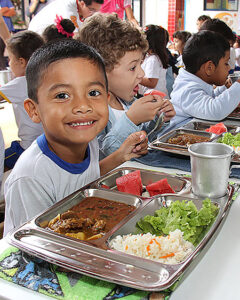 O cardápio conta também com proteínas como carne bovina, peixe, ovos e frango, o que prioriza uma alimentação equilibrada para crianças e adolescentes da rede municipal de ensino.