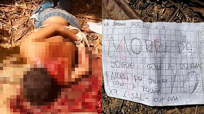 Junto ao corpo estava um bilhete atribuído a uma facção criminosa, que acusa a vítima de traição e vazamento de informações à polícia militar.