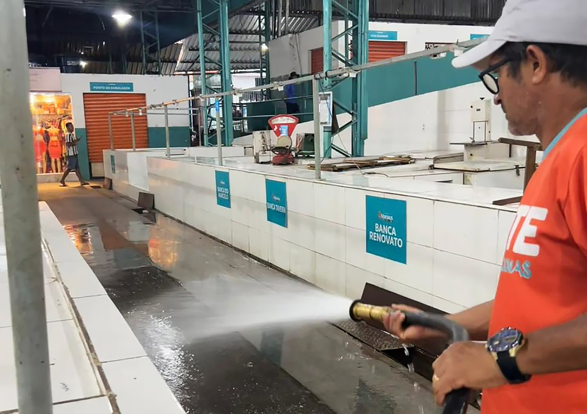A Prefeitura de Manaus, por meio da Secretaria Municipal de Agricultura, Abastecimento, Centro e Comércio Informal (Semacc), realiza, até domingo (29-mar), a lavagem e higienização das principais feiras abastecedoras de pescado da capital.