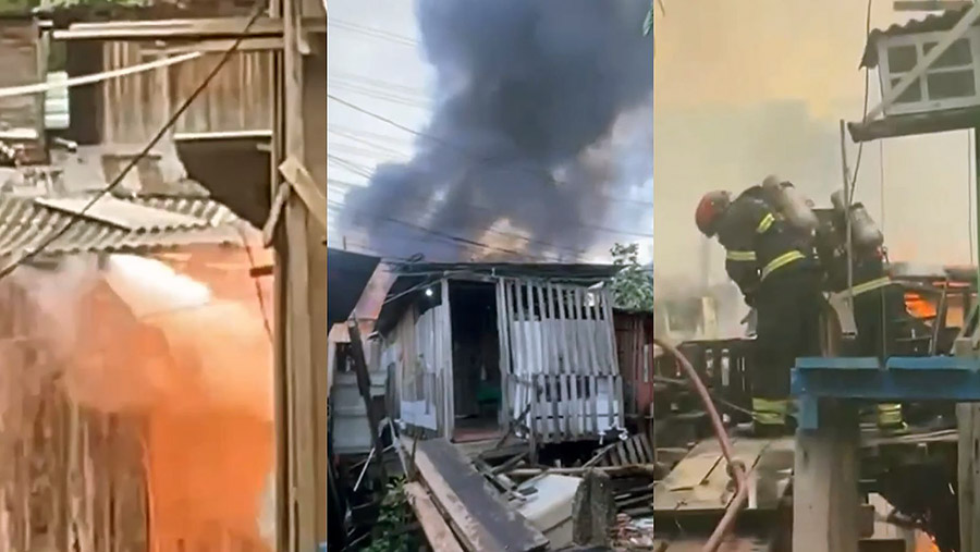 Um fio elétrico desencapado caiu sobre a cama e possivelmente causou o incêndio que atingiu ao cinco casas no beco Bragança, bairro São Jorge, zona oeste de Manaus, nesta sexta-feira (31-out).