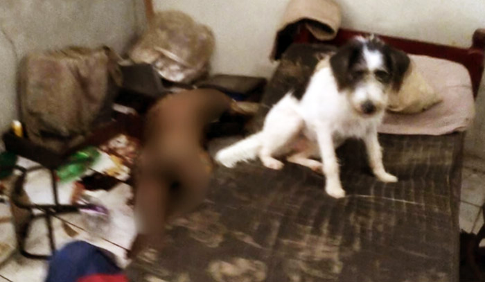 A residência estava cheia de moscas e, junto ao cadáver, o cachorro do homem, que se recusou a abandonar o dono.