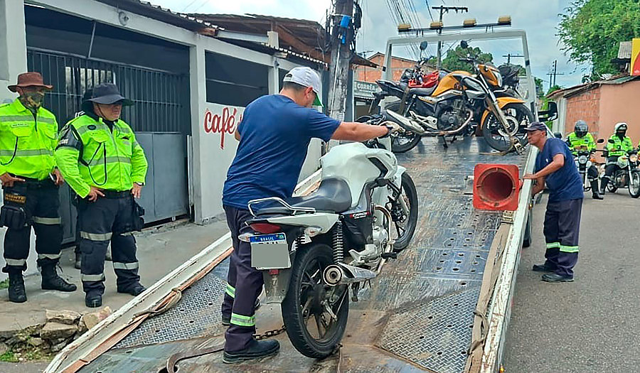 A operação, realizada no bairro Novo Israel, próximo à 18ª Cicom, removeu 13 motocicletas por irregularidades como licenciamento atrasado, CNH vencida e veículos em péssimo estado de conservação.