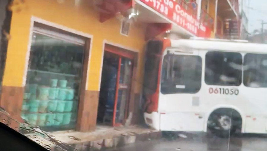Hoje (03-dez), na forte chuva que caiu em Manaus, um ônibus do transporte coletivo perdeu os freios e invadiu uma loja de material de construção na rua Álvaro Bandeira de Melo, bairro Petrópolis, zona sul da cidade.