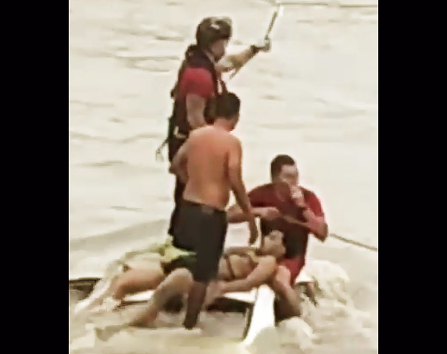 O socorrista colocou o jovem sobre o teto do carro e iniciou a reanimação da vítima, enquanto o veículo se movia na correnteza.